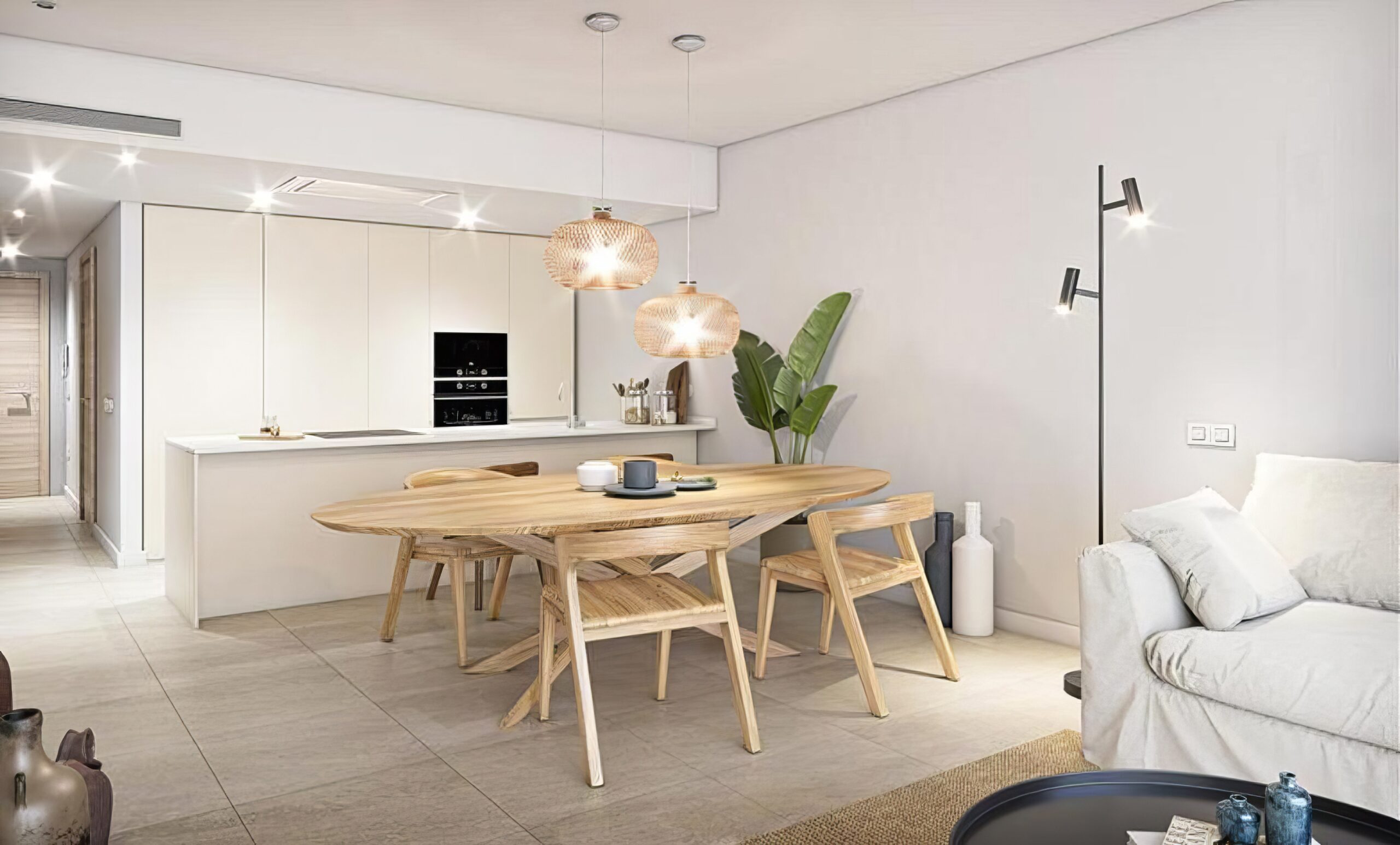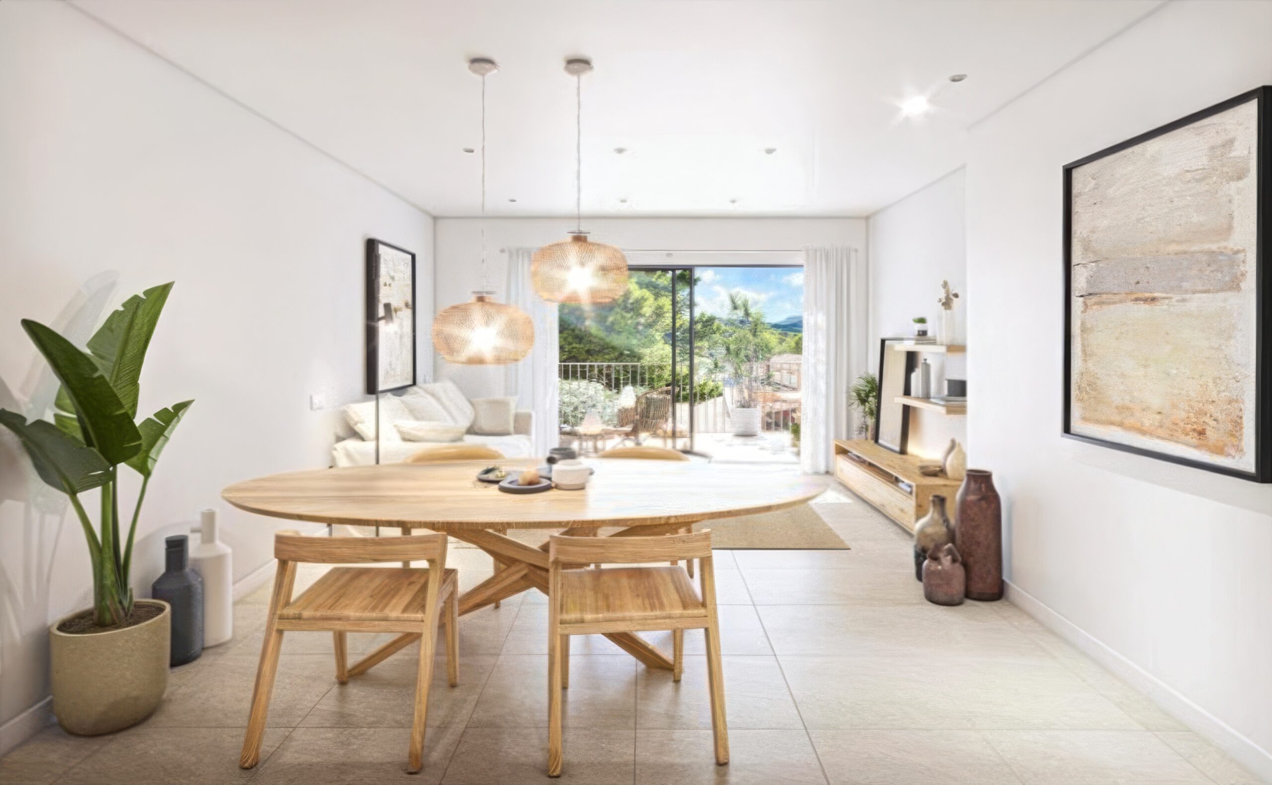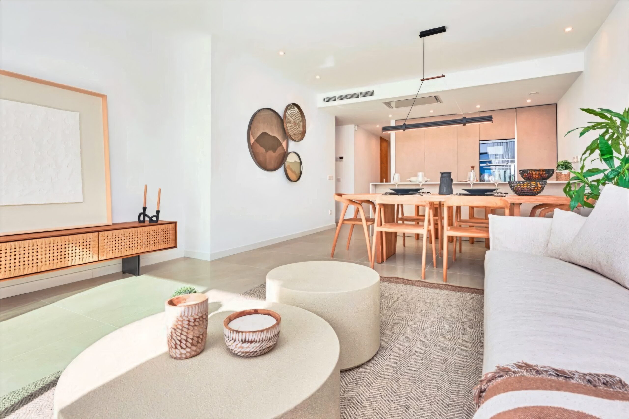 The layout is open and welcoming, with living room, dining area, and kitchen combined into one – designed for a modern Mediterranean lifestyle where space, light, and views take center stage.