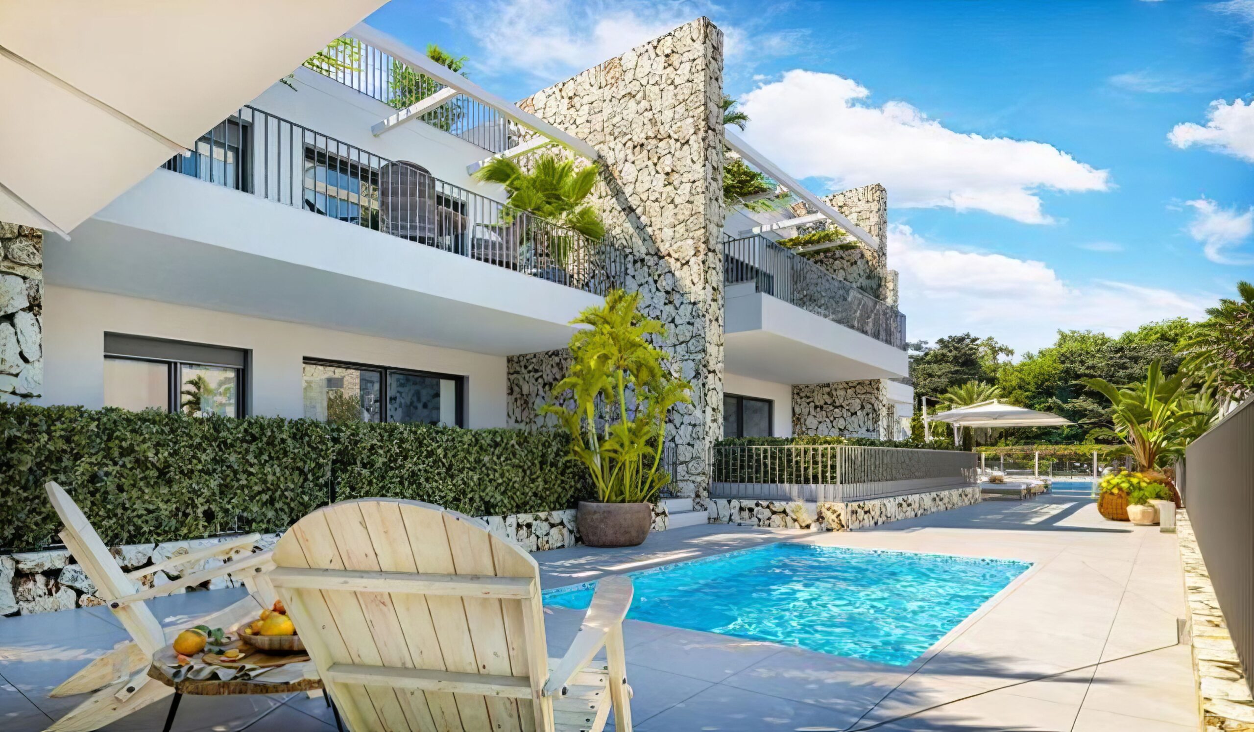 We deliberately chose this ground-floor apartment because it offers something truly special: a wonderfully cosy and private garden that becomes a natural extension of the home. Here, you can enjoy the morning sun, peaceful afternoons in the shade, and warm evenings under the open sky – with direct access to both pool areas. The garden creates a rare sense of privacy, while the community is just outside your door.
